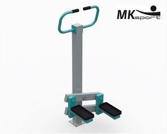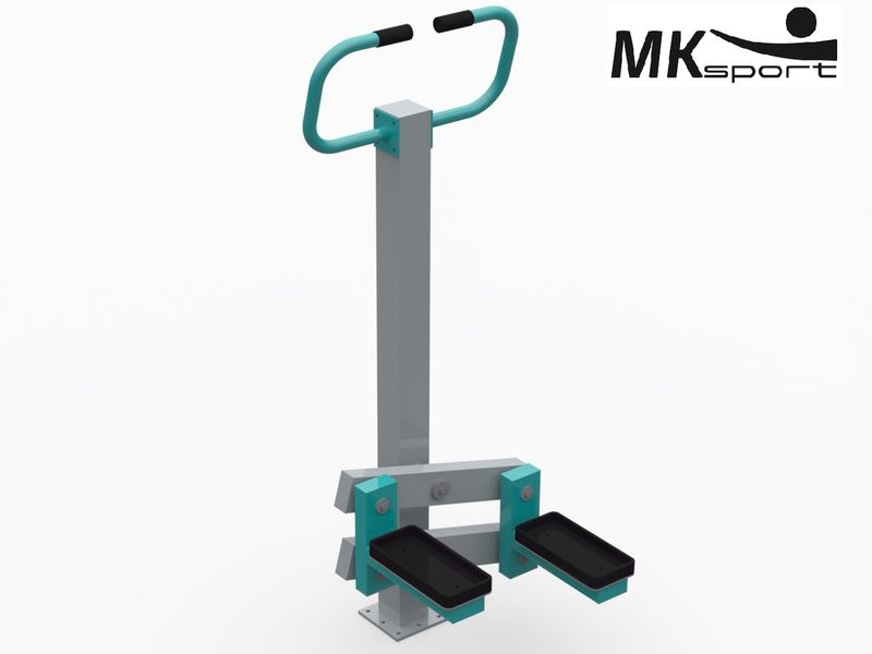 Тренажер имитирует ходьбу по лестнице. В процессе выполнения упражнений тренируются мышцы ног, коленные и тазобедренные суставы, укрепляется сердечно-сосудистая и дыхательная системы. Уличный тренажер выполнен из профиля 100*100*4, 100*50*3 и 48*3. Ногоступы изготовлены из противоскользящего пластика. Стандартное сочетание цветов: серый и бирюзовый.