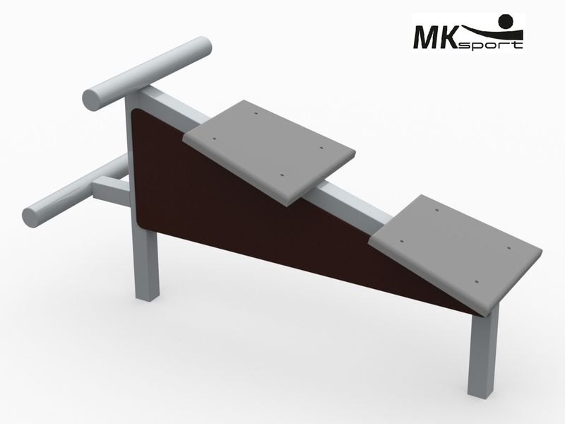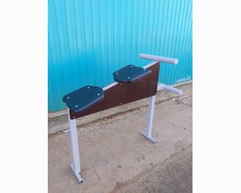 Уличный тренажер для укрепления мышц ног и живота. Для удобства выполнения упражнений скамья для пресса оснащена двумя пластиковыми упорами и закругленным валиком для фиксации ног. Оборудование выполнено из стальных профилей 50*50*2 и 42*3. Обшивка изготовлена из влагостойкой ламинированной фанеры 9 мм, накладки из пластика. Цвет изделия – серый.