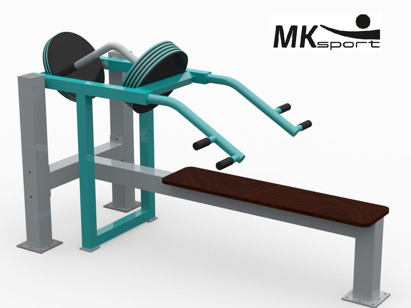 Уличный тренажер предназначен для выполнения упражнения жим лежа в целях укрепления мышц рук и груди. Для регулирования нагрузки тренажер оснащен 8 металлическими дисками, вес каждого – 10 кг. Благодаря наличию 2 пар ручек оборудование может быть использовано спортсменами любого роста и комплекции. Скамья изготовлена из влагостойкой ламинированной фанеры, ручки резиновые. Каркас тренажера выполнен из стальных профилей 100*100*4, 60*60*3, 48*3 и 42*3. Стандартное сочетание цветов – серый и бирюзовый.